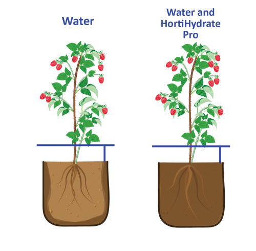 Water applied to the top of containers takes the easiest path downwards by gravity, and if the growing media surface is dry and hydrophobic, water will run down the inside edge of the container, completely missing the root system. Using HortiHydrate Pro ensures all the growing media in the container has an even moisture profile.